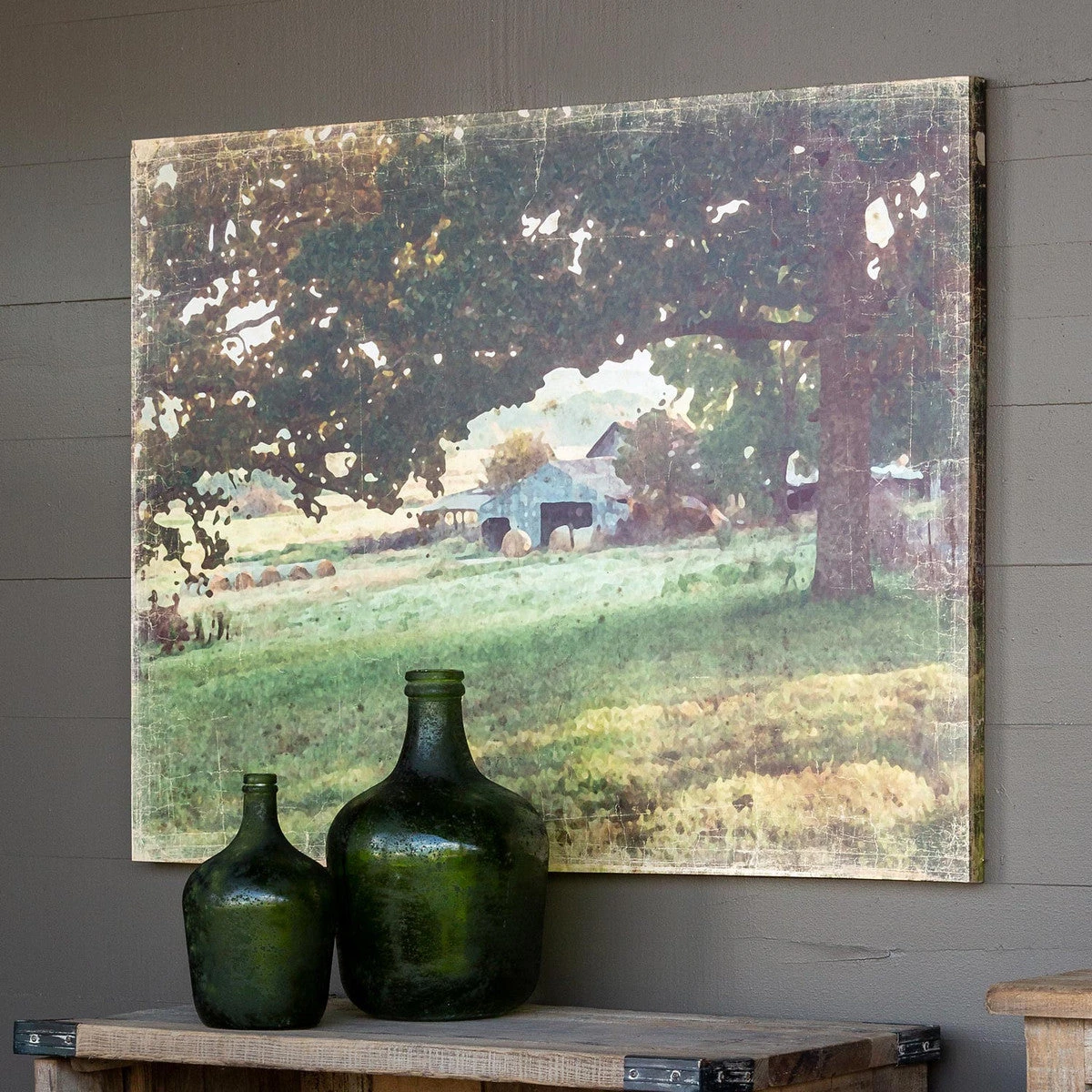 Original photography, was reinterpreted in watercolor, then printed and antiqued to add depth, this lovely piece provides a calm depiction of farm life.
