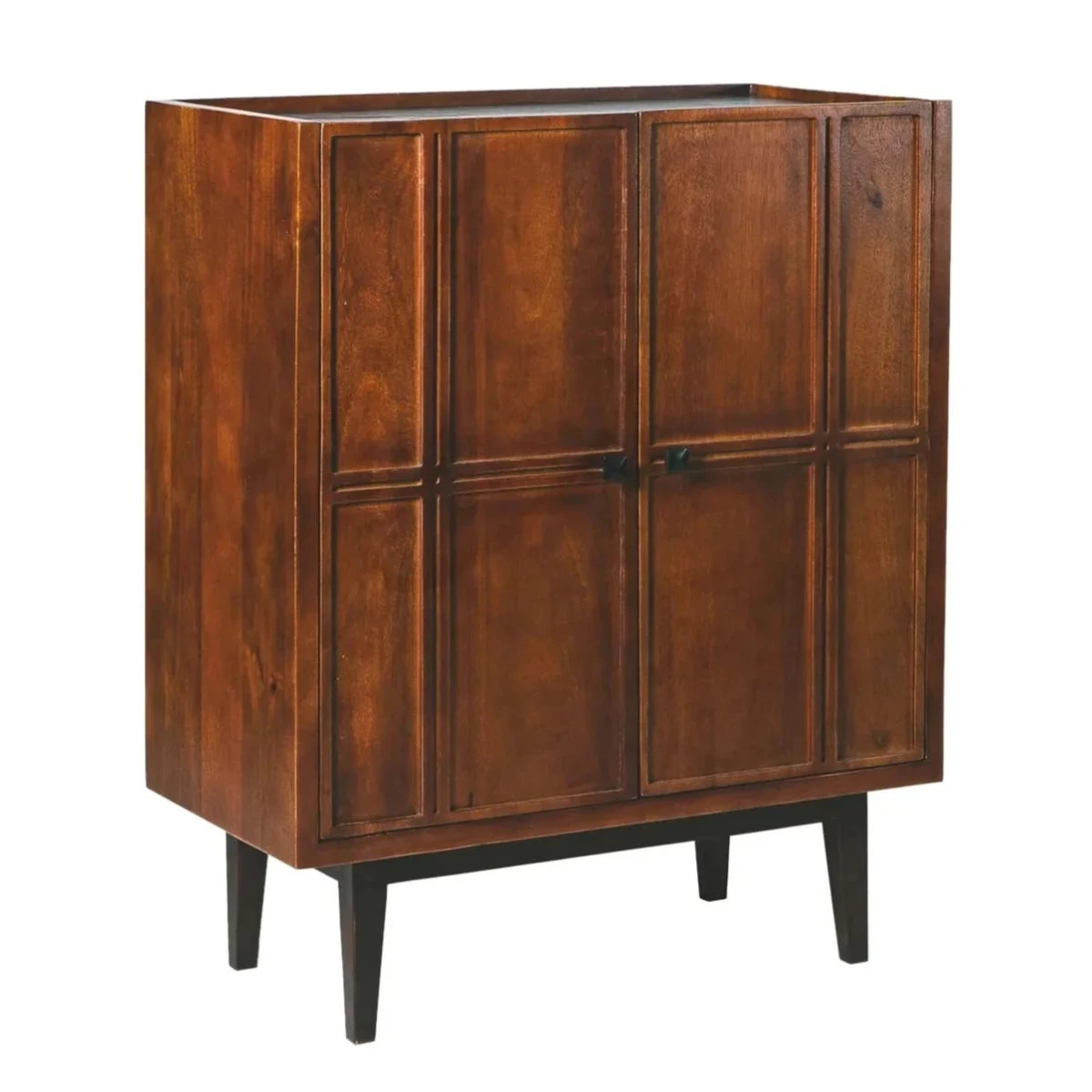 What sets the Essential Bar Cabinet apart is its thoughtful design and practical features. Behind two golden mango wood doors with subtle carved molding detail and magnet closures, you’ll discover generous storage space for your wine collection and an extensive array of liquors. Keep everything organized and at your fingertips, ready for impromptu gatherings or special occasions.